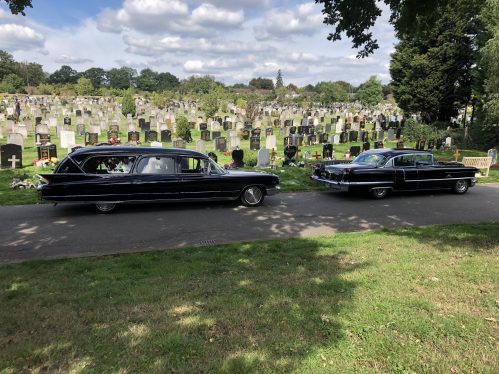 For funerals we can also supply this beautiful matching 1960 Cadillac Series 75 Limousine