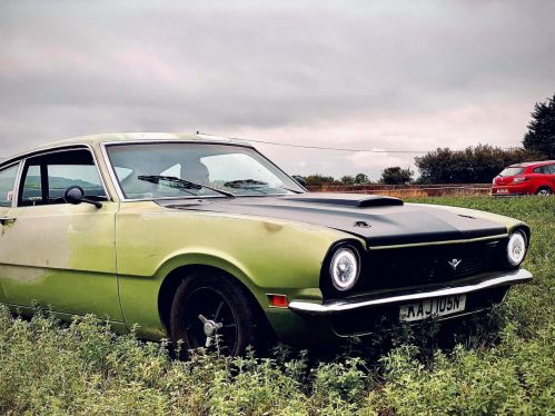 Listed is my Ford Maverick 1975 V8 hotrod, imported from the Californian desert. It features untouched ‘patina’ paintwork and a rebuilt modernized V8 engine. With its rockstar green snakeskin interior it certainly feels alternative with a rough and ready appearance.